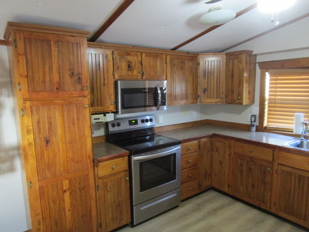 Inside, you’ll find a bright and inviting kitchen with newer appliances, including a refrigerator with ice maker and a garbage disposal—a thoughtful added convenience. The handmade kitchen cabinets are outstanding and beautiful!
