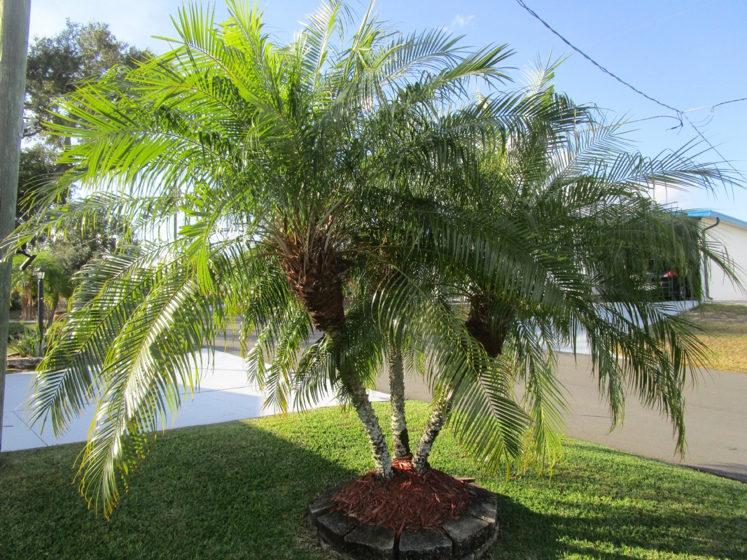 The manicured yard is picture-perfect, boasting lush green grass, palm trees, and neatly trimmed shrubs that create wonderful curb appeal. Although the home is an older model, it has been lovingly updated and maintained far beyond what most others in the community have achieved.